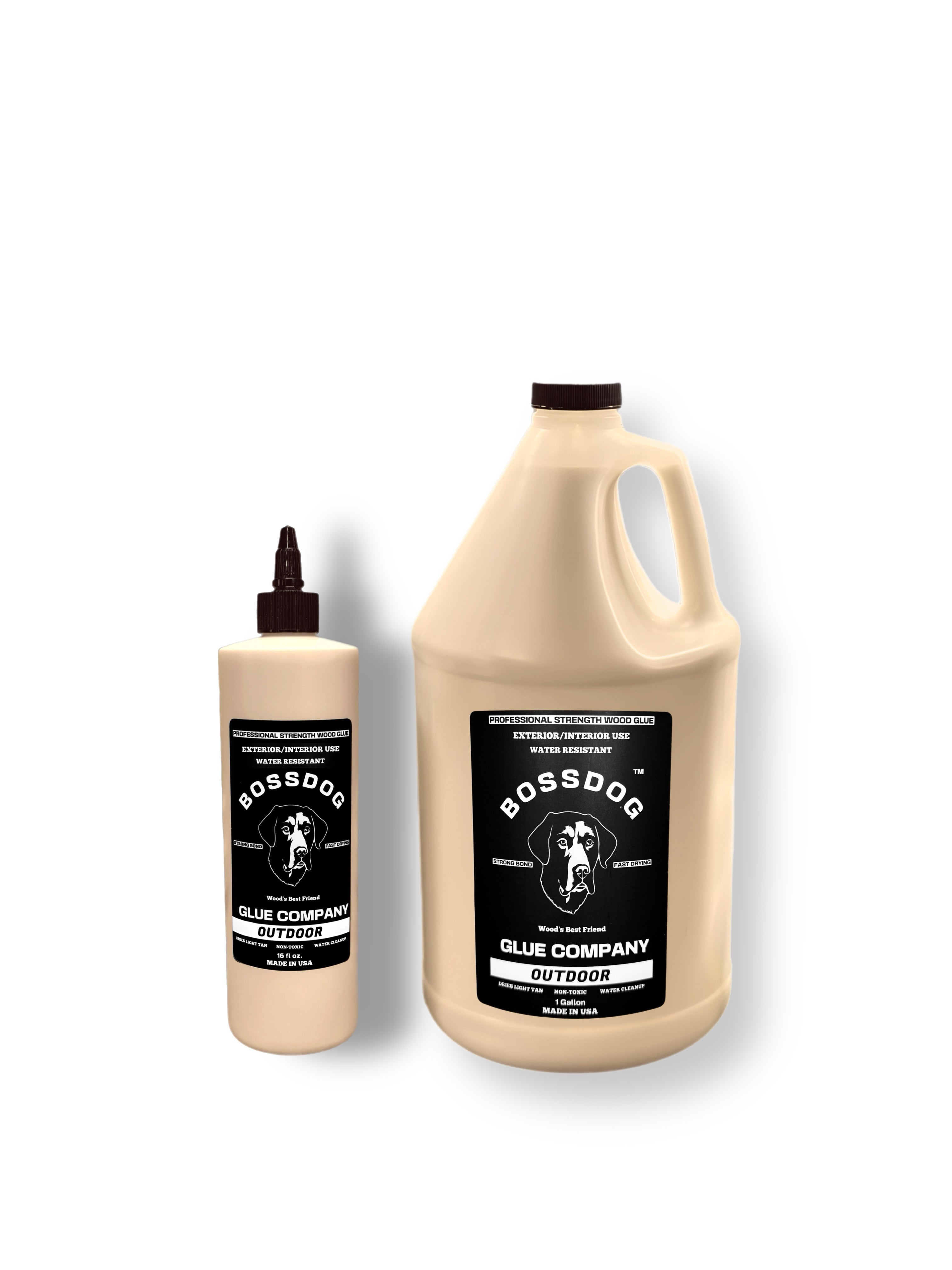 The Ultimate PRO Pack contains one, 1 Gallon and one 16oz. bottle of DARK BROWN BOSSDOG PRO Strength Wood Glue.